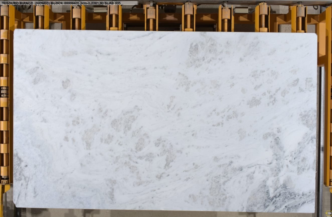 Elevate your interiors with the exquisite Tesoro Bianco marble. This stunning natural stone boasts a creamy white backdrop, elegantly adorned with subtle, flowing veins of soft gray and sparkles. A favorite for high-end bathrooms and breathtaking kitchen islands, Tesoro Bianco adds a sense of grandeur and light to any space. While marble is known for its delicate nature, its beauty is unmatched – making it a dream material for those who appreciate fine design and natural artistry.