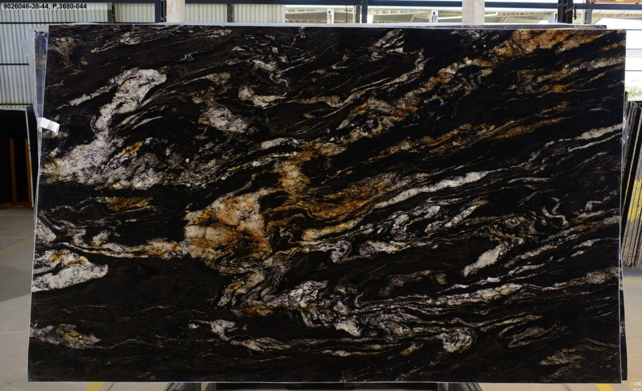 Titanium granite is a beautiful natural stone that combines bold contrast with fluid movement. Its deep black background is accented by golden and white veins, creating a striking visual impact. This granite is a showpiece in modern and contemporary designs, bringing warmth and sophistication to countertops, bar tops, and kitchen islands.